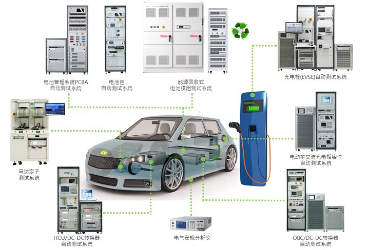 Chroma提供了可编程交流电源可编程直流电源可编程直流电子负载、可编程交流电子负载、功率分析仪、安规测试仪,电源自动测试系统等产品,电源和负载的额定功率从几百瓦到几百千瓦,可用于测试电动车汽/混合动力汽车相关零部件和设备。
