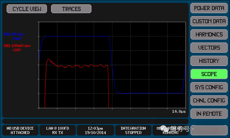 周期视图(图4)能够呈现电压和电流周期波形的单个周期,用户可自主设置幅度和缩放,实现对波形细节的深入观察,采样率高达384MSPS。