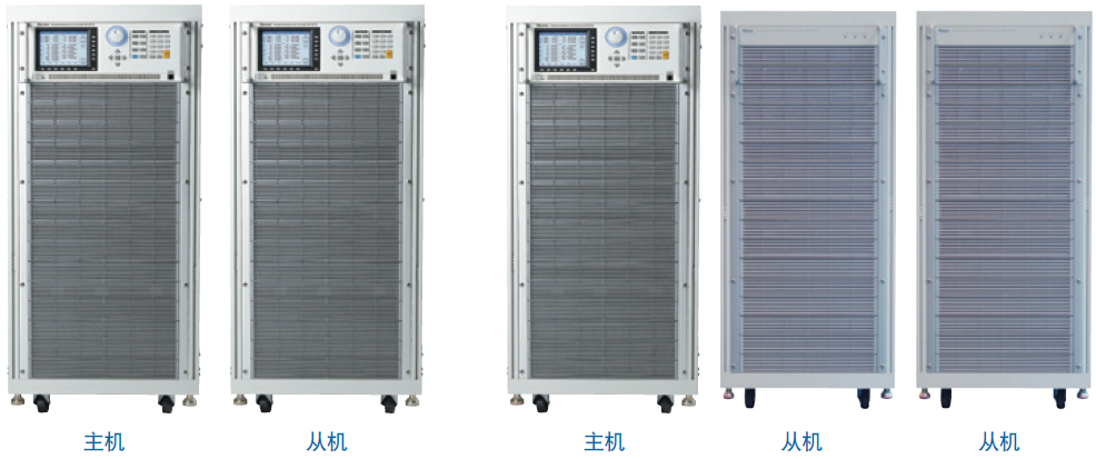 Chroma 61500系列可编程交流电源供应器可经由(Master/Slave)并联输出模式以达成使用者对于高功率的需求。其中61501/61502/61503/61504/61505机种无提供并联功能;61507/61508/61509机种以同功率系列机种(即61507/61508/61509/61607/61608/61609)互相搭配且最多可并联台数为2台;为满足更大的功率需求,61509及61609等6kVA机种可进一步达到3至5台单机(Master/Slave)并联,且两款机种可混合搭配,实现18kVA、24kVA、30kVA等大功率输出功能。 (3kVA、4.5kVA机种不支援3台以上并联功能)
