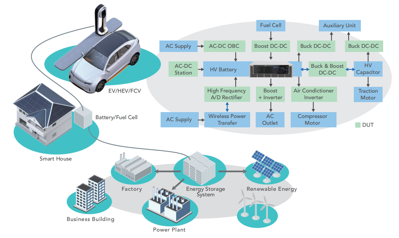 新能源PV/EV/Fuel Cell/Battery兴起已成为取代传统能源(煤、石油等)之市场趋势,然而大量的电动车运行及储能电池并网需求将促使分布式储能微电网更加快速商业化,伴随着电力转换装置将朝双向设计,高效率、高压转换及高功率密度方向结合电池应用趋势发展快速,因此促使电池模拟器(双向电源)测试设备需求。