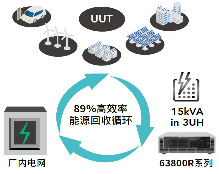 • 提供额定视在功率回灌能力,经转换可89%高效率回收至电网