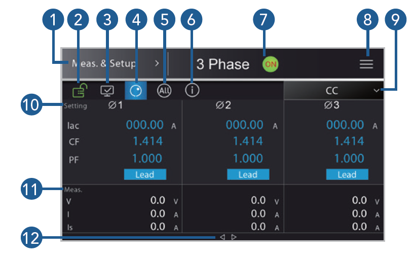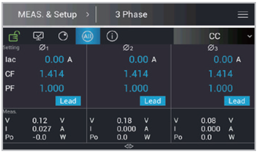 ▲ CC Lead/Lag Mode主画面 (三相)