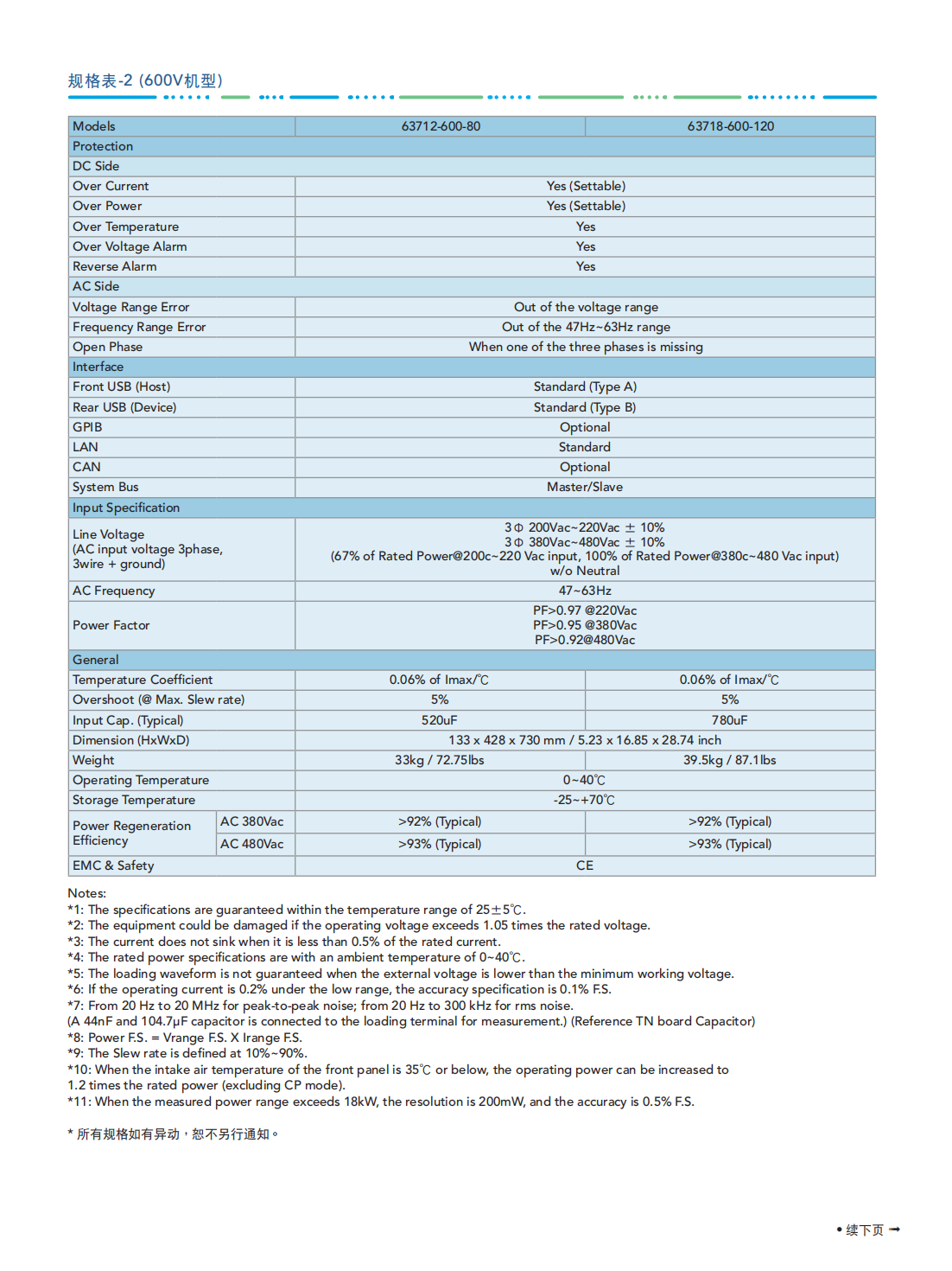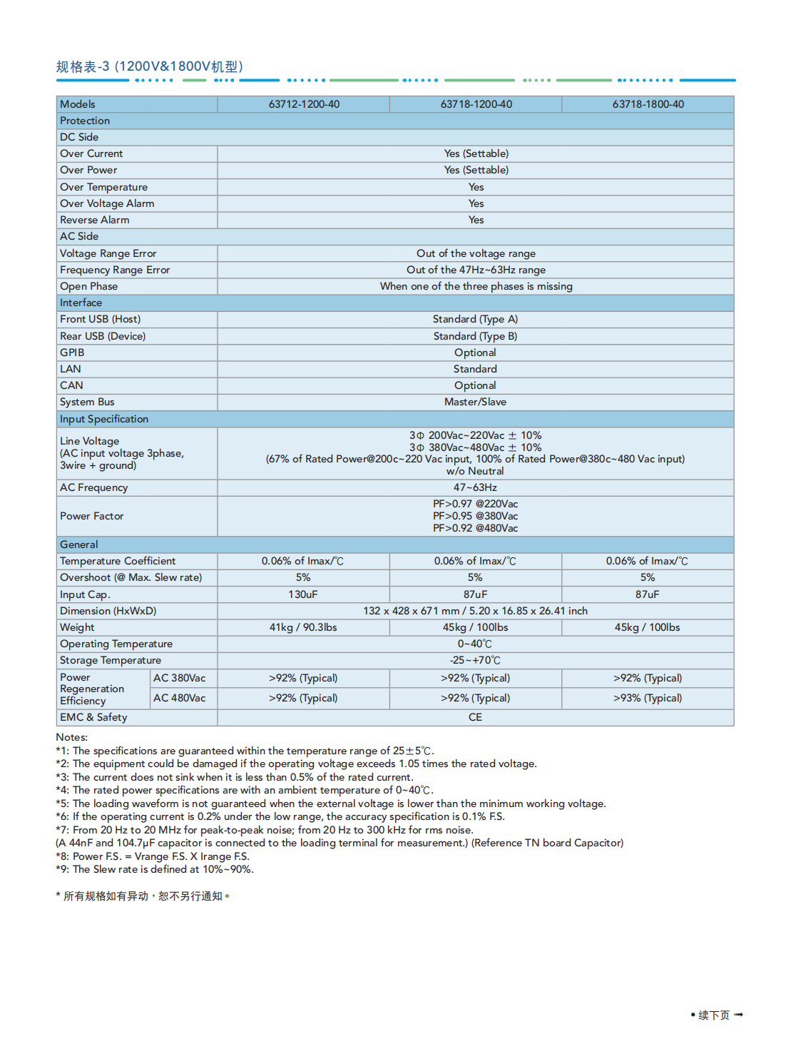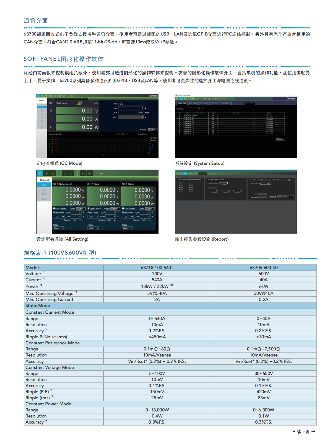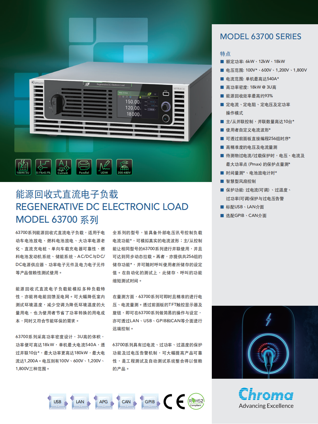 名  称:Chroma能源回收式直流电子负载63700 系列