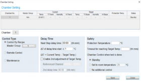 内置温箱设定与控制工步,可由软件设定温控的超时与过温保护,温箱除控制温/湿度外亦可指定温箱控温时间、延长时间与待机温度。