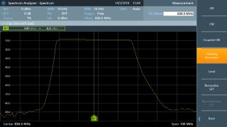 FPC1500 可以在独立模式下使用集成式信号源。由于具备这种独特功能,R&S®FPC1500 可用作连续波 (CW) 信号发生器。信号源可用作本振信号以进行混频器测量,或用作输入信号以进行放大器增益测量。