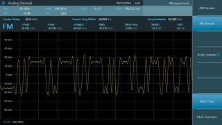 基本数字调制格式被用于多种应用,例如近场通信。R&S®FPC 支持 ASK 和 FSK 分析。数字调制显示屏包括轨迹、眼图、调制误差和符号分析。此外,还提供低功耗蓝牙 (Bluetooth® LE) 和胎压监测系统 (TPMS) 的专有配置预设。通过内置扬声器或耳机插孔支持解调音频。
