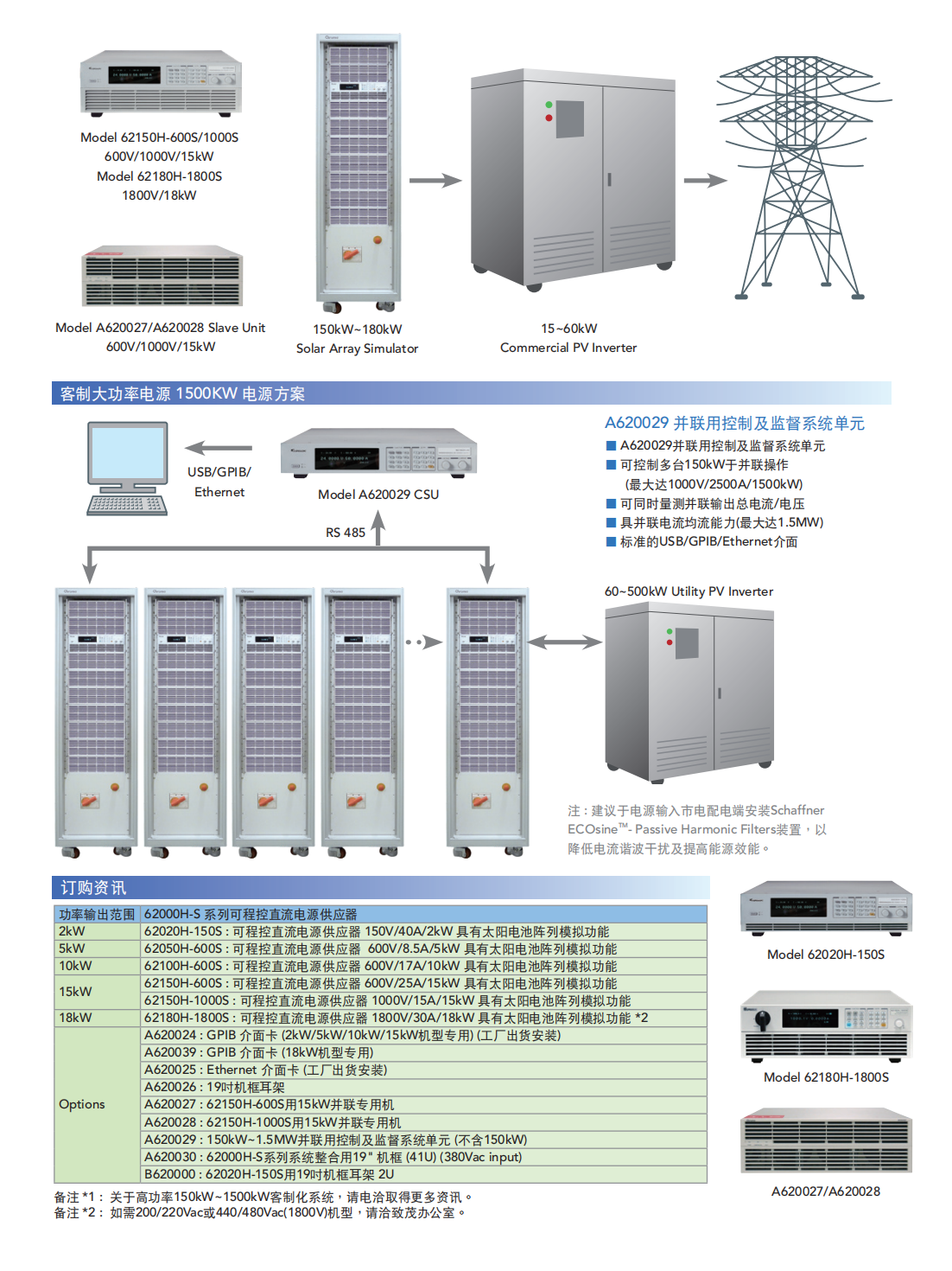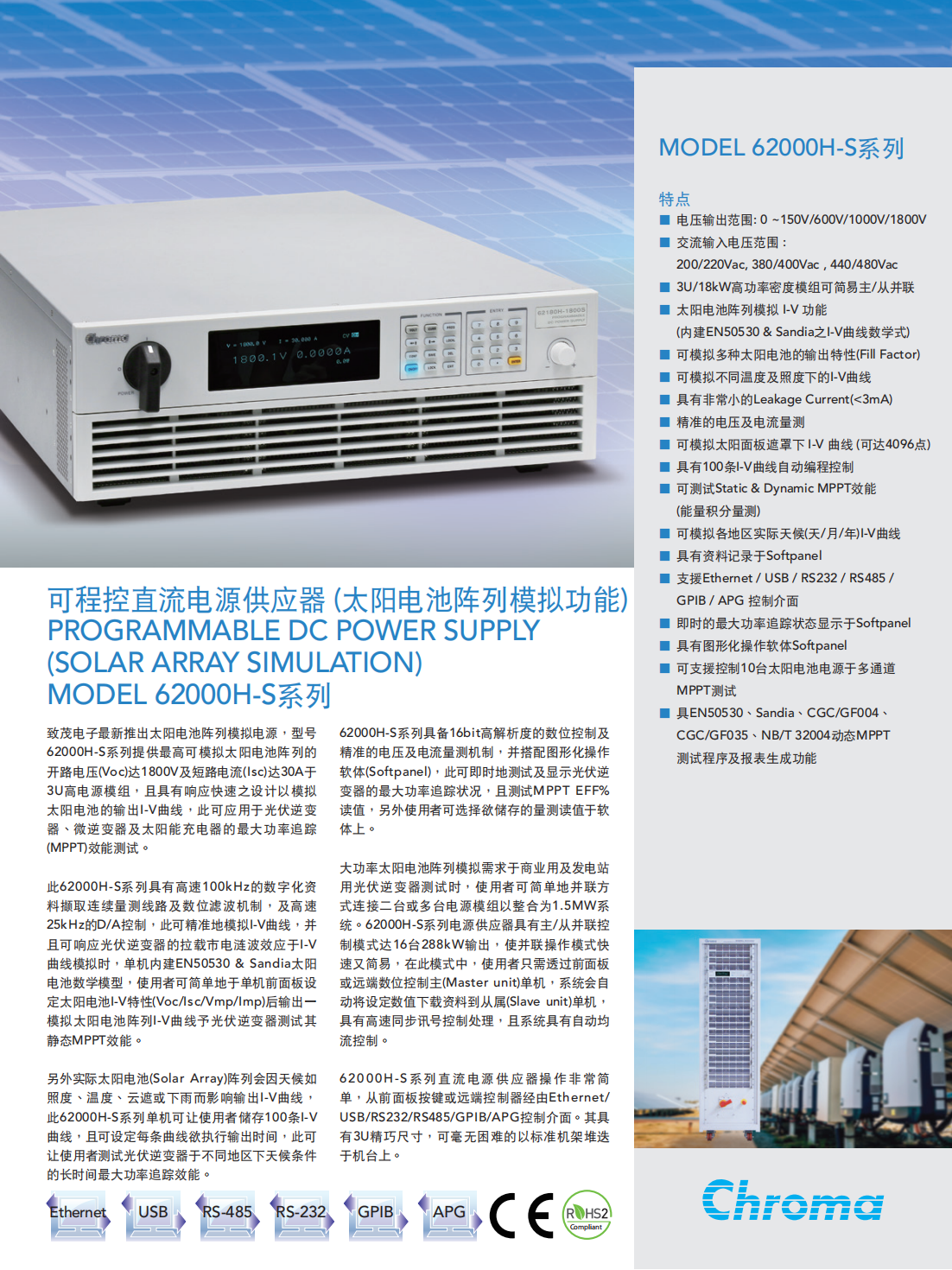 名  称:可程控直流电源供应器(太阳电池阵列模拟功能)MODEL62000H-S系列