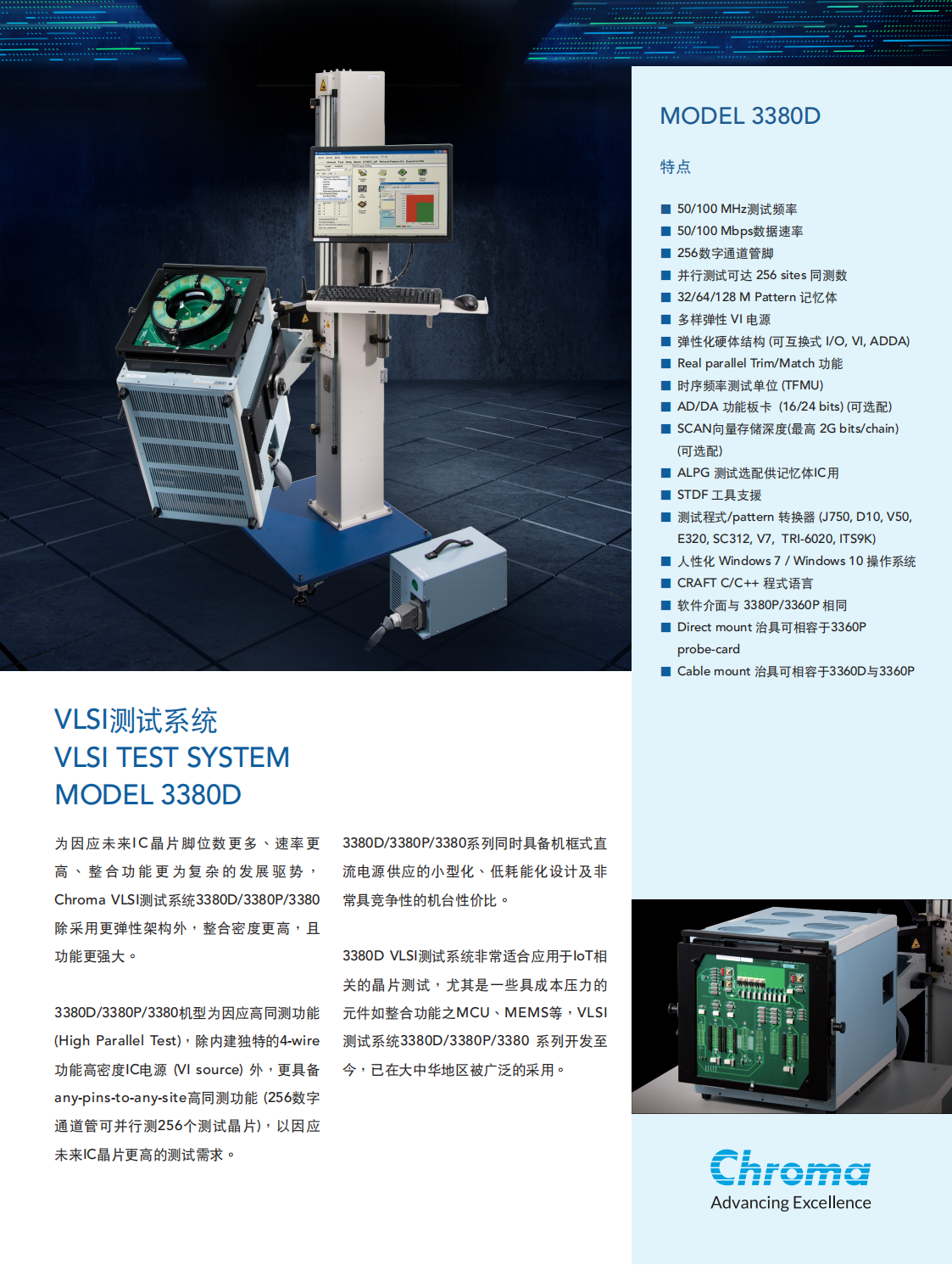 3380D/3380P/3380系列同时具备机框式直流电源供应的小型化、低耗能化设计及非常具竞争性的机台性价比。