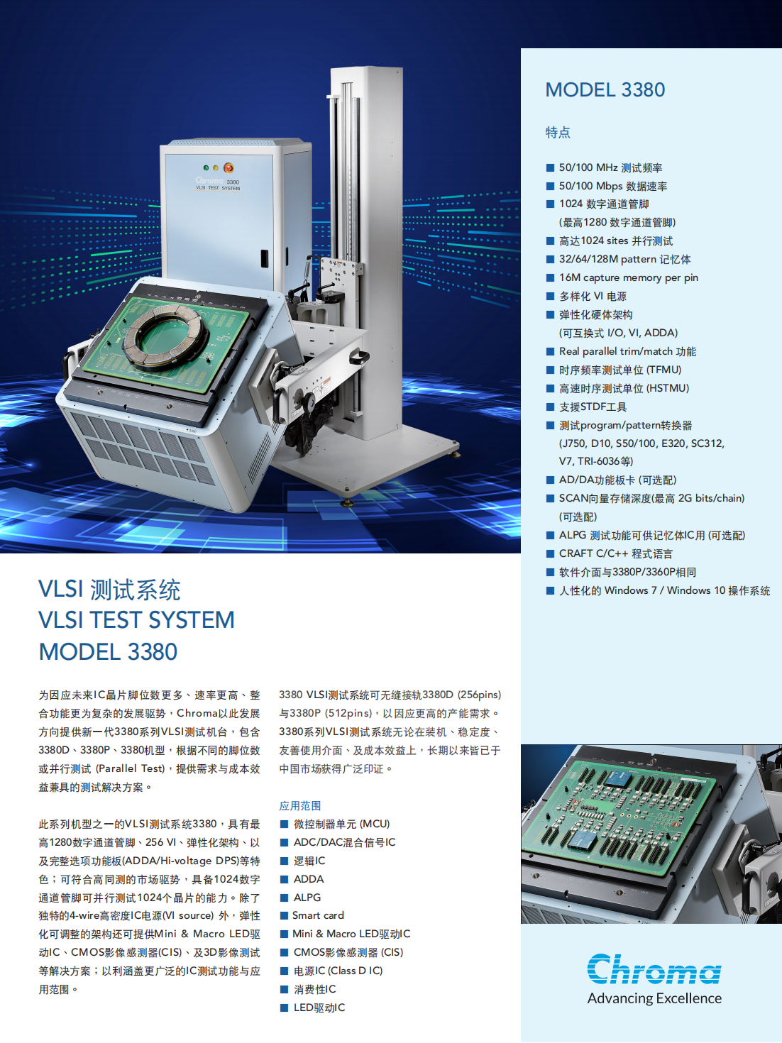 3380 VLSI测试系统可无缝接轨3380D(256pins)与3380P(512pins),以因应更高的产能需求。