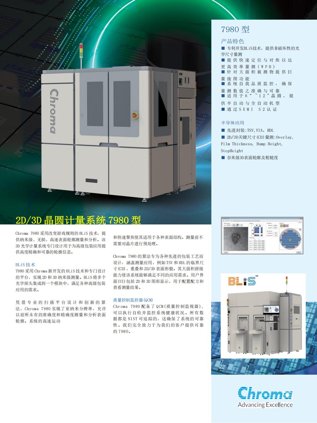 Chroma 7980采用改变游戏规则的BLiS技术,提供纳米级、无损、高速表面轮廓测量和分析。